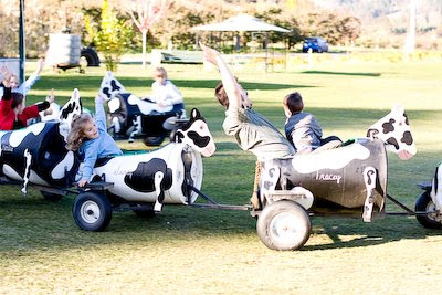 Josh and the kids enjoying the super-speedy cow train ride